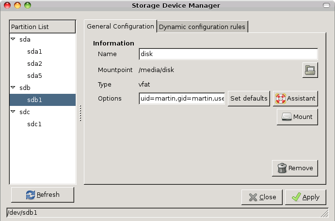 PySDM Storage Device Manager: Customize your Hard Disk Mount Points with a Graphical front end for fstab
