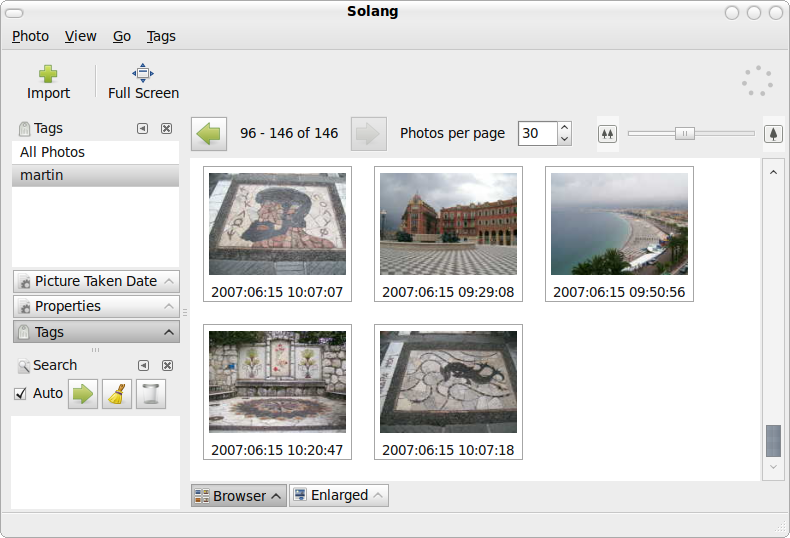 Solang is an open source photo manager for the Gnome Desktop that looks very similar to the Gnome in-built F-Spot. This similarity is simply due to the use of F-Spot icons in Solang. Many have also tagged the new-born Solang as a Mono-Free version and alternative to F-Spot. Well, that its Mono-Free is true, Solang is written in C++ anf GTK+, that it’s a ported version of F-Spot has still to be confirmed.