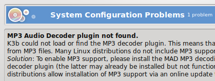 then close K3b, install libk3b6-extracodecs – sudo apt-get install libk3b6-extracodecs and relaunch K3b.